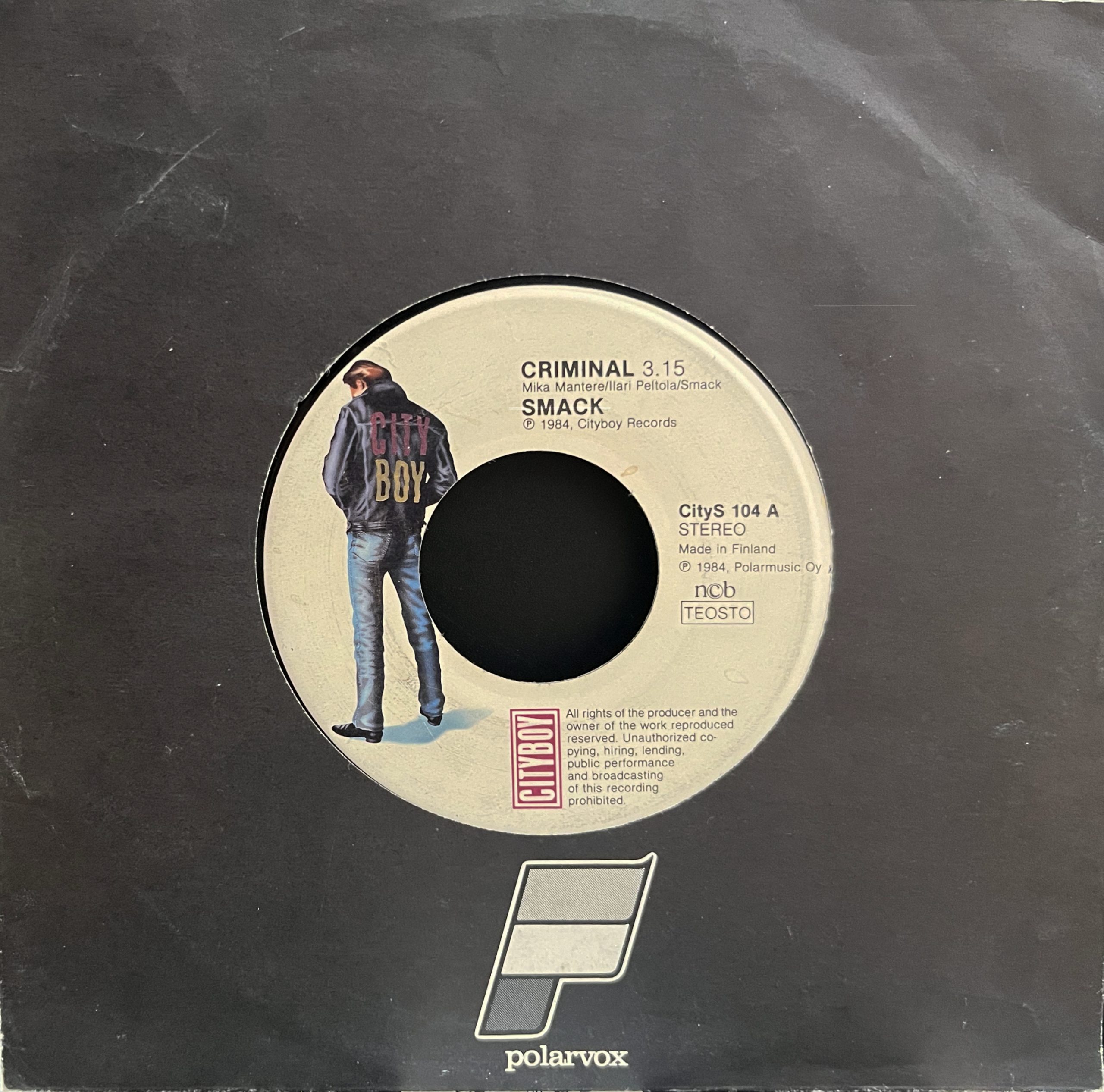 Used 7″, single, Cityboy – CityS 104. Finland. Generic record company sleeve.